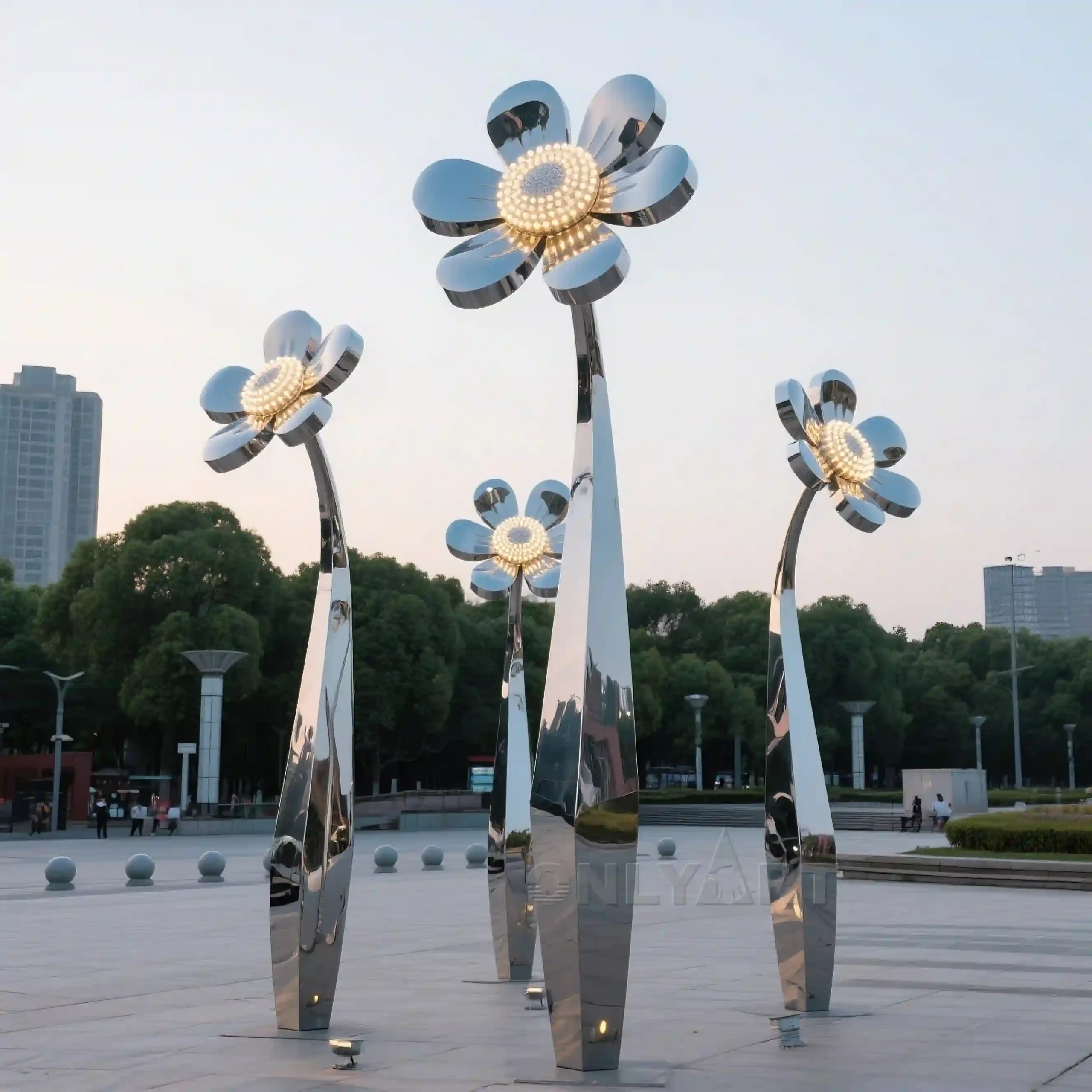 Our factory specializes in custom-made Abstract Metal Daisy Statue. The floral sculpture you see here is one we recently designed and completed this year. We can customize it for all clients. We offer a wide selection of stainless steel materials, sizes, and colors. Please contact us.