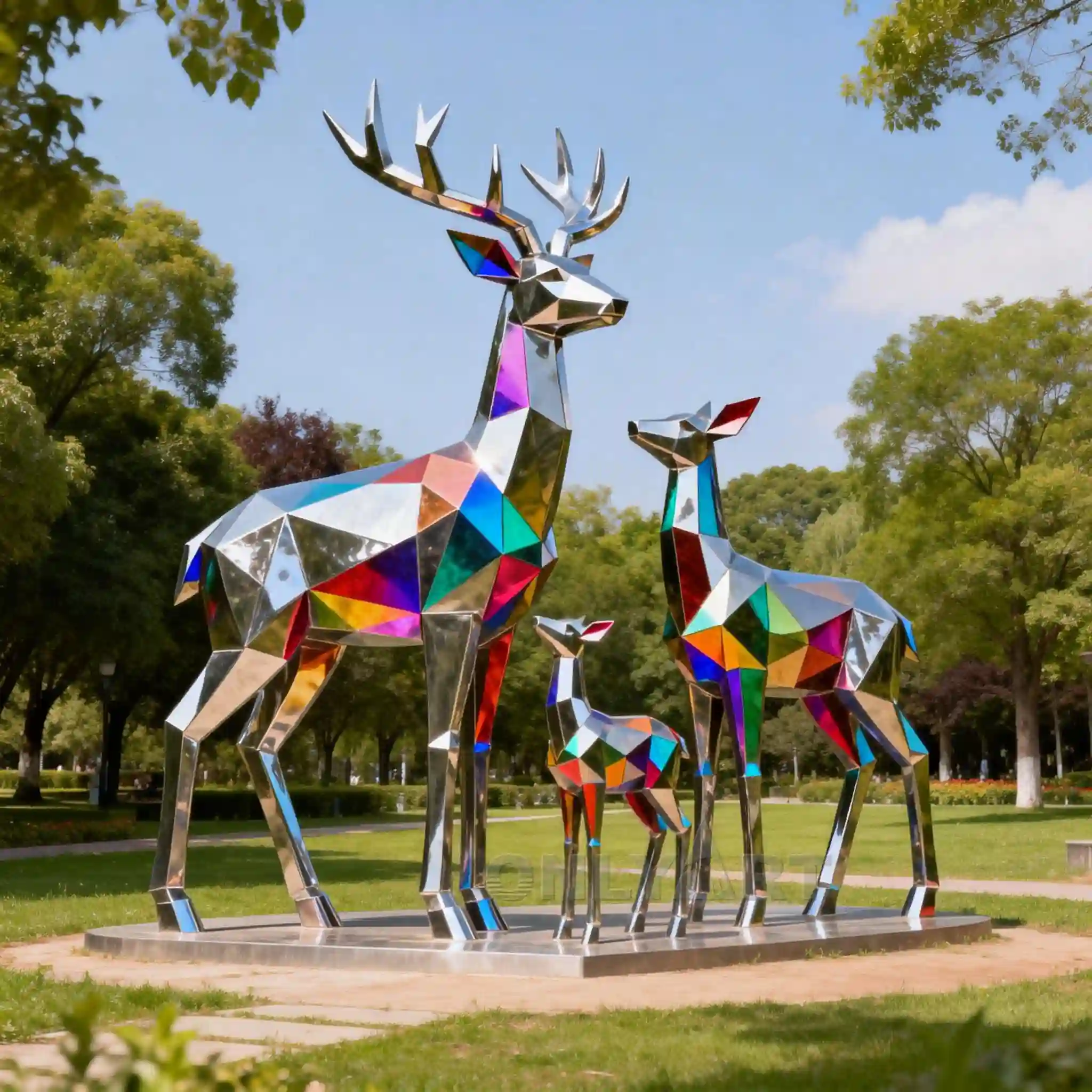 Our factory can customize various sizes and colors of Art Deco Life Size Deer Statue for Outdoors. We offer geometric shapes, colorful surfaces, mirror.