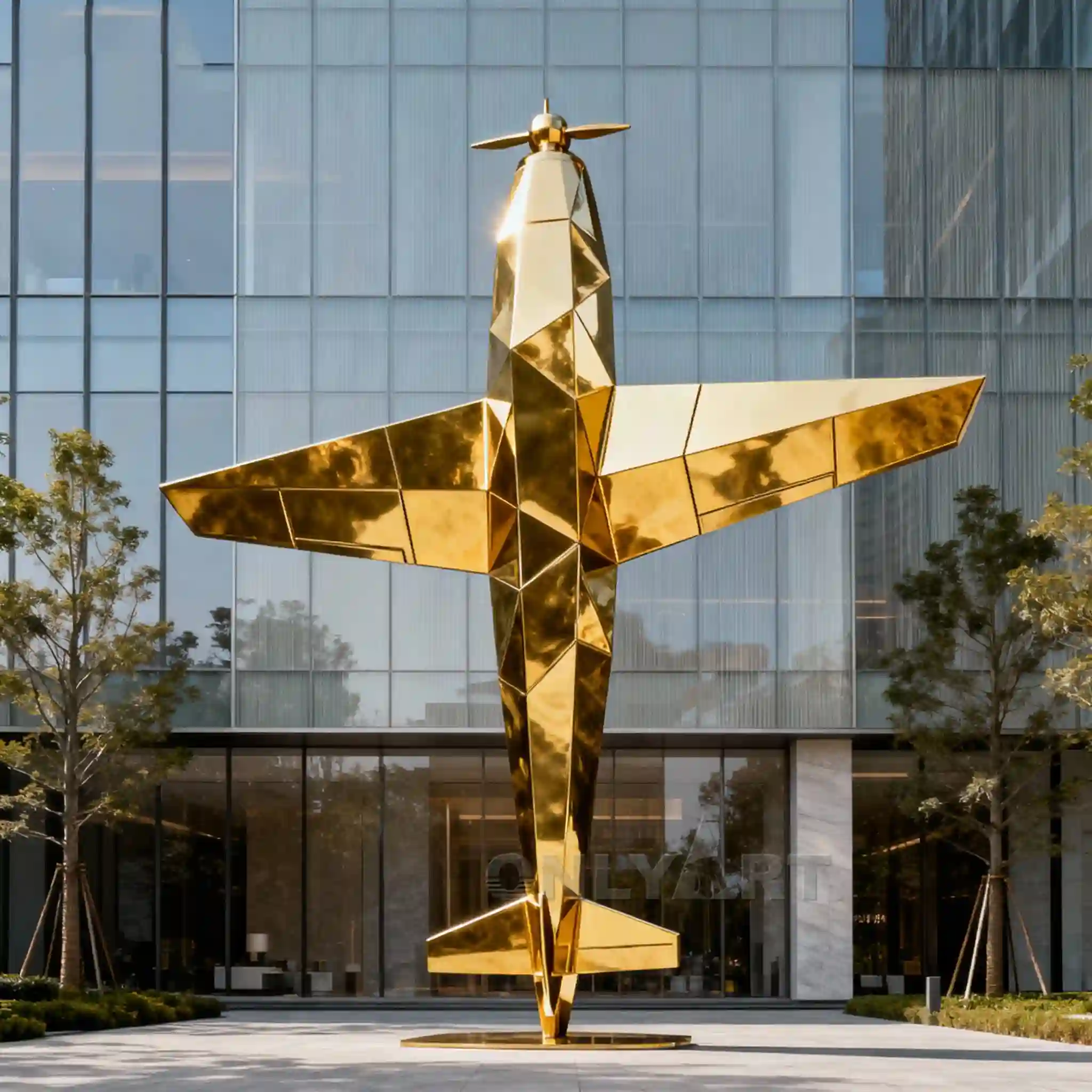 This is a very popular custom metal airplane sculpture for sale, designed by our factory. It features a 3D geometric shape, a stainless steel metallic texture.