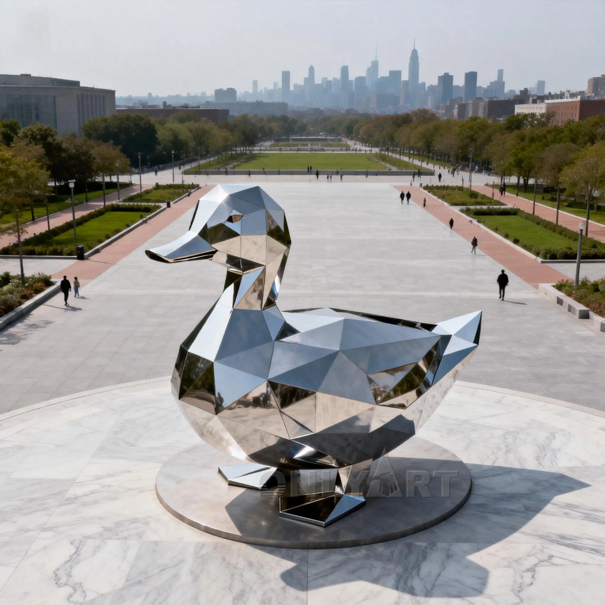 We sell custom made Geometric Stainless Steel Large Duck Sculpture.From surface color and material to size, everything can be customized to your specifications.
