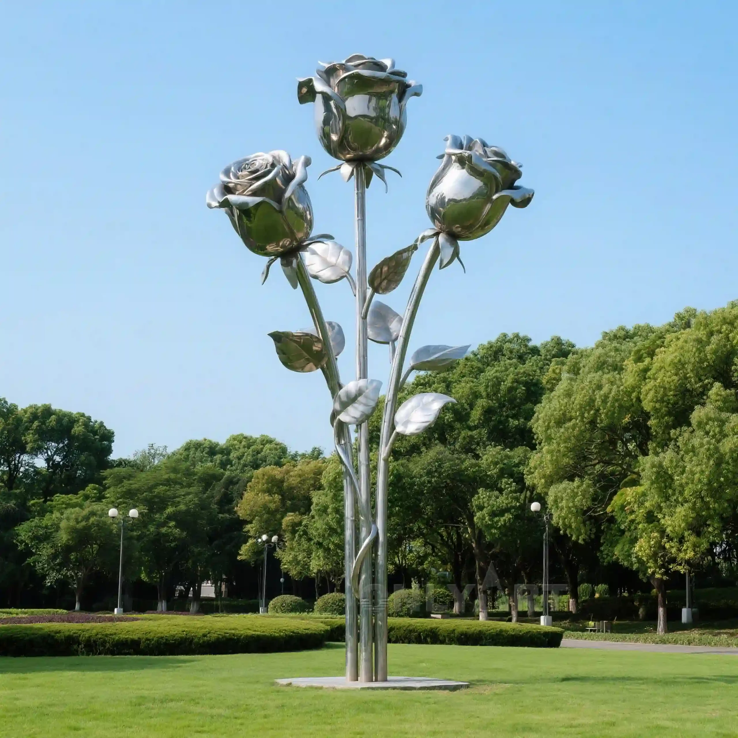 Our factory designs and manufactures Handmade Steel Rose Flower for Garden. These metal roses, handcrafted by our artists, are made of 304 stainless steel with a polished, mirror-like finish. They can also be painted in various colors, and sizes can be customized. They are the perfect choice for decorating your outdoor garden.