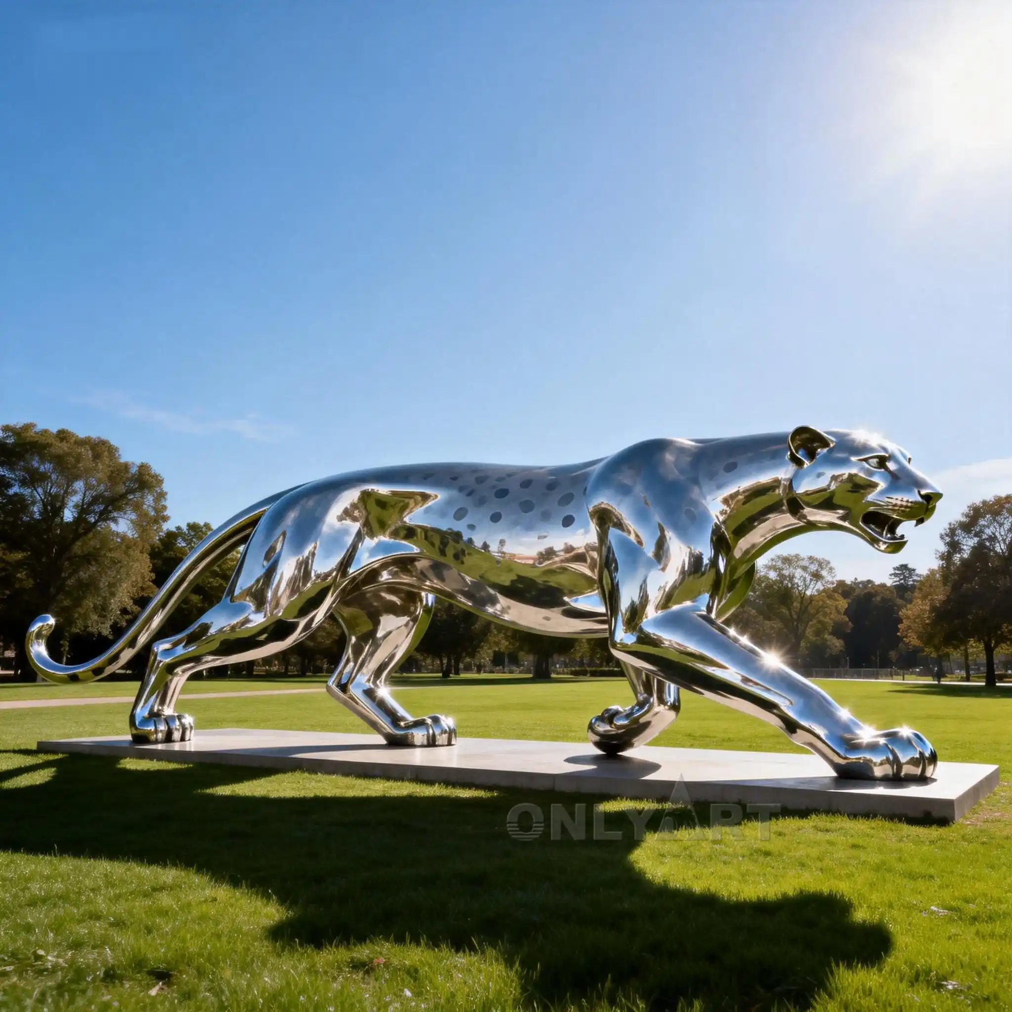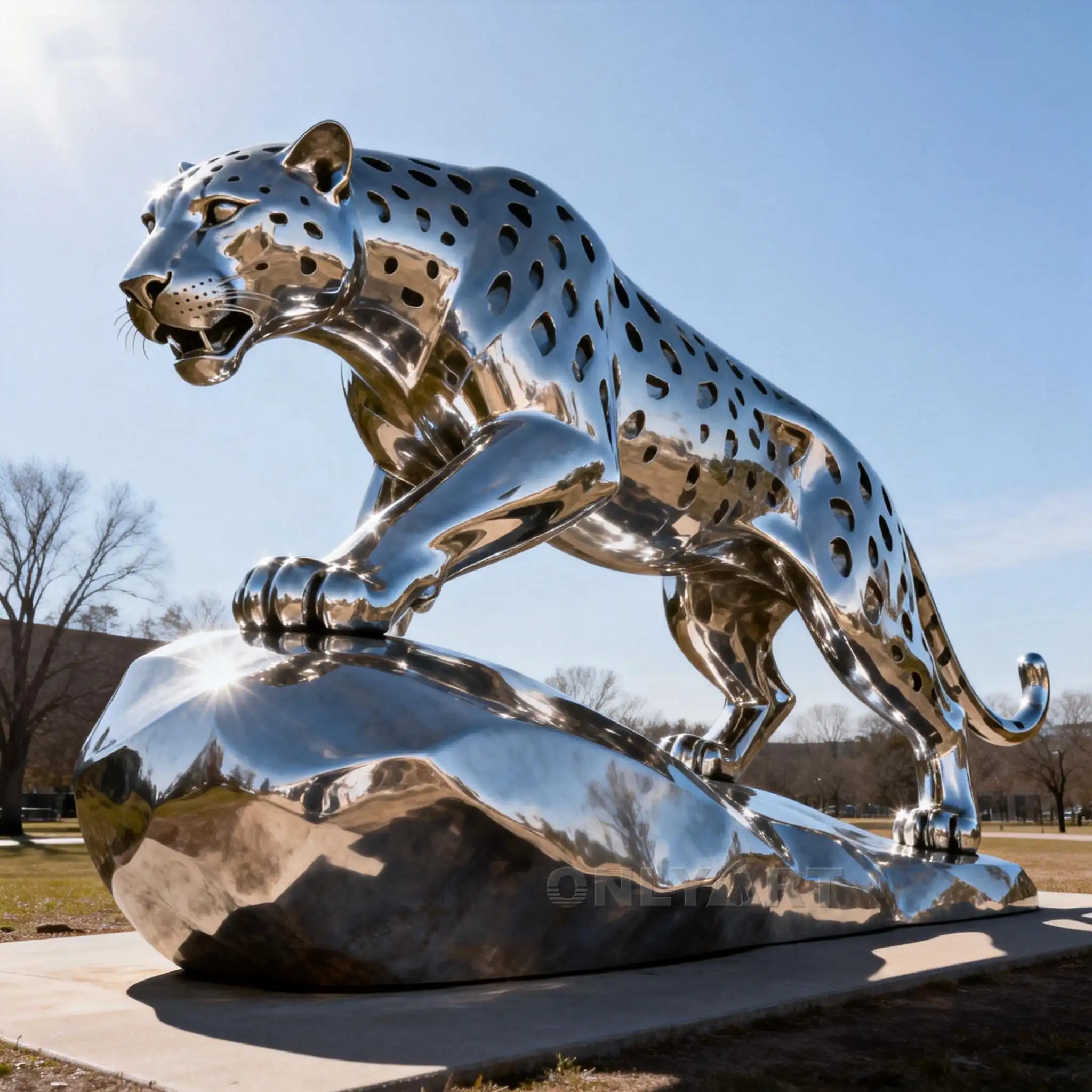 Custom Stainless Steel Large Metal Snow Leopard Statue.leopard is often depicted in sculptures in dynamic poses to symbolize explosive power and agility.