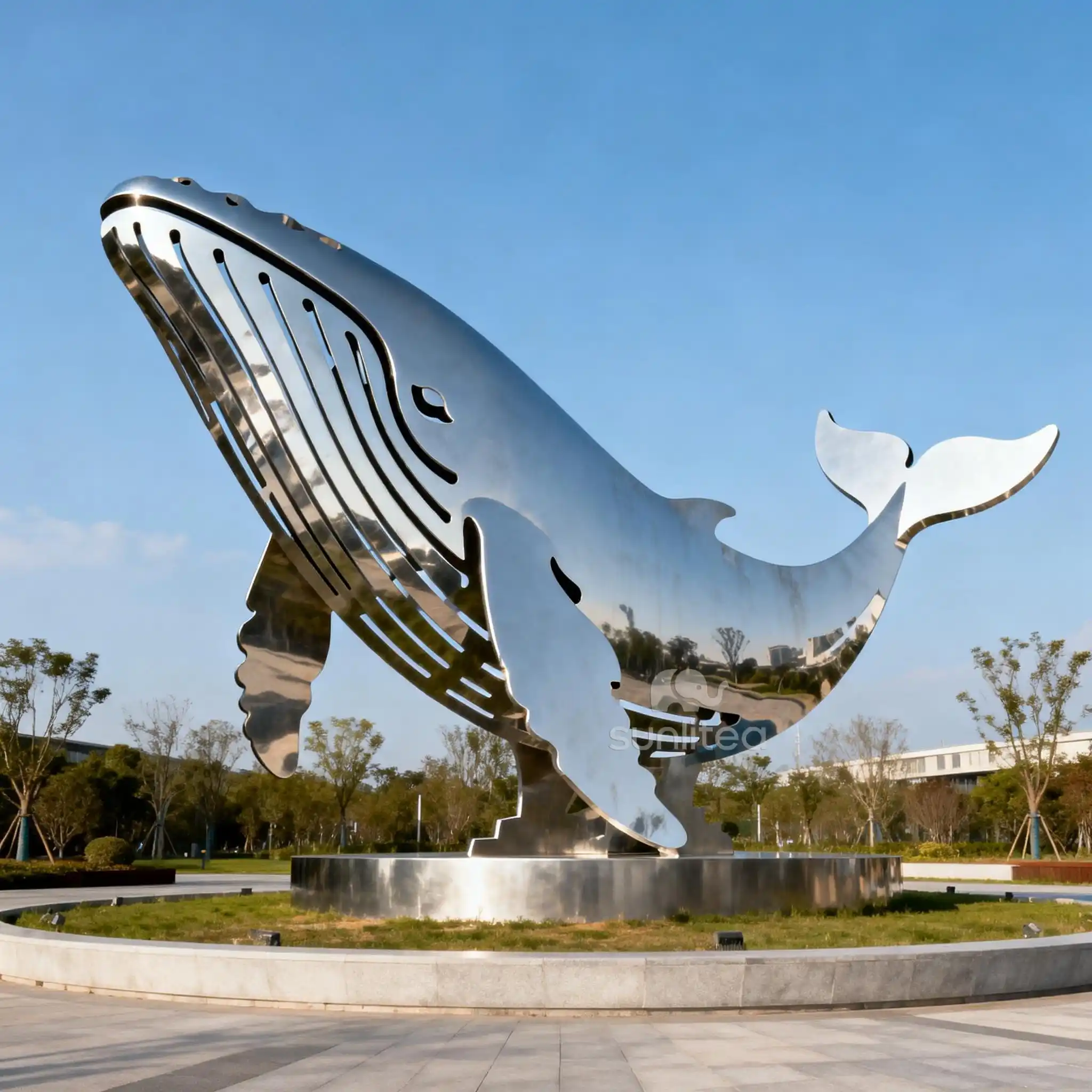 A large metal whale silhouette, capturing the majesty of marine life. Ideal for outdoor gardens or public spaces.