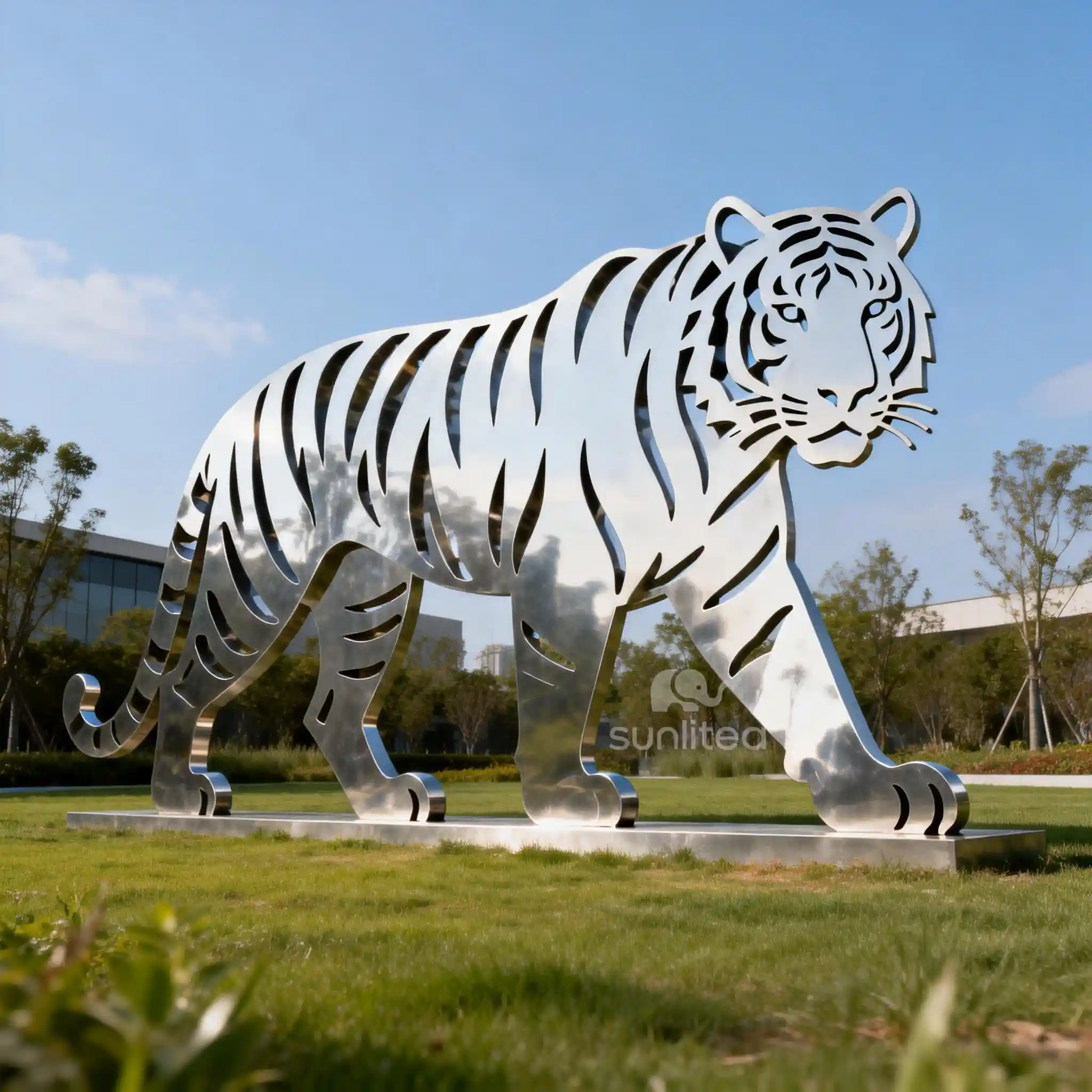 The statue’s reflective surface adds a modern touch, while its large size makes it a focal point, drawing attention and inspiring awe. The tiger is a symbol of strength, courage, and leadership, adding a layer of meaning to the sculpture. Whether placed in a public square, a corporate campus, or a zoo, it serves as a powerful reminder of the beauty and power of the animal kingdom.