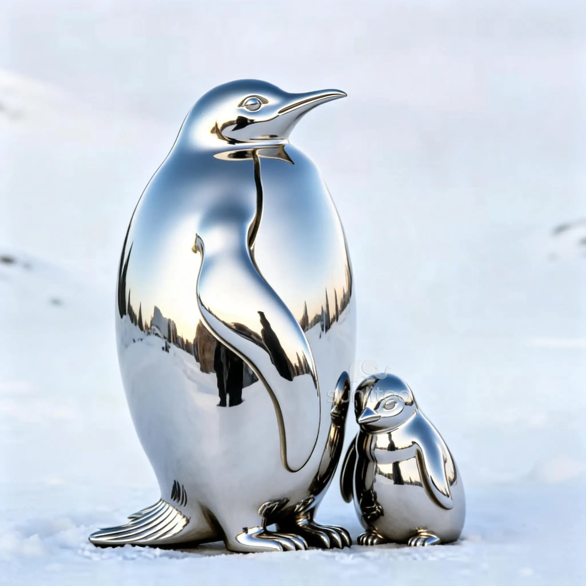 This Metal Big Penguin Statue is a bold statement piece, standing 100 inches tall and crafted from heavy-gauge steel with a mirror finish. Its oversize design commands attention, making it perfect for parks, shopping centers, or large residential gardens. The statue’s detailed feathers and expressive eyes are hand-sculpted by artisans, adding a touch of realism to its industrial aesthetic.