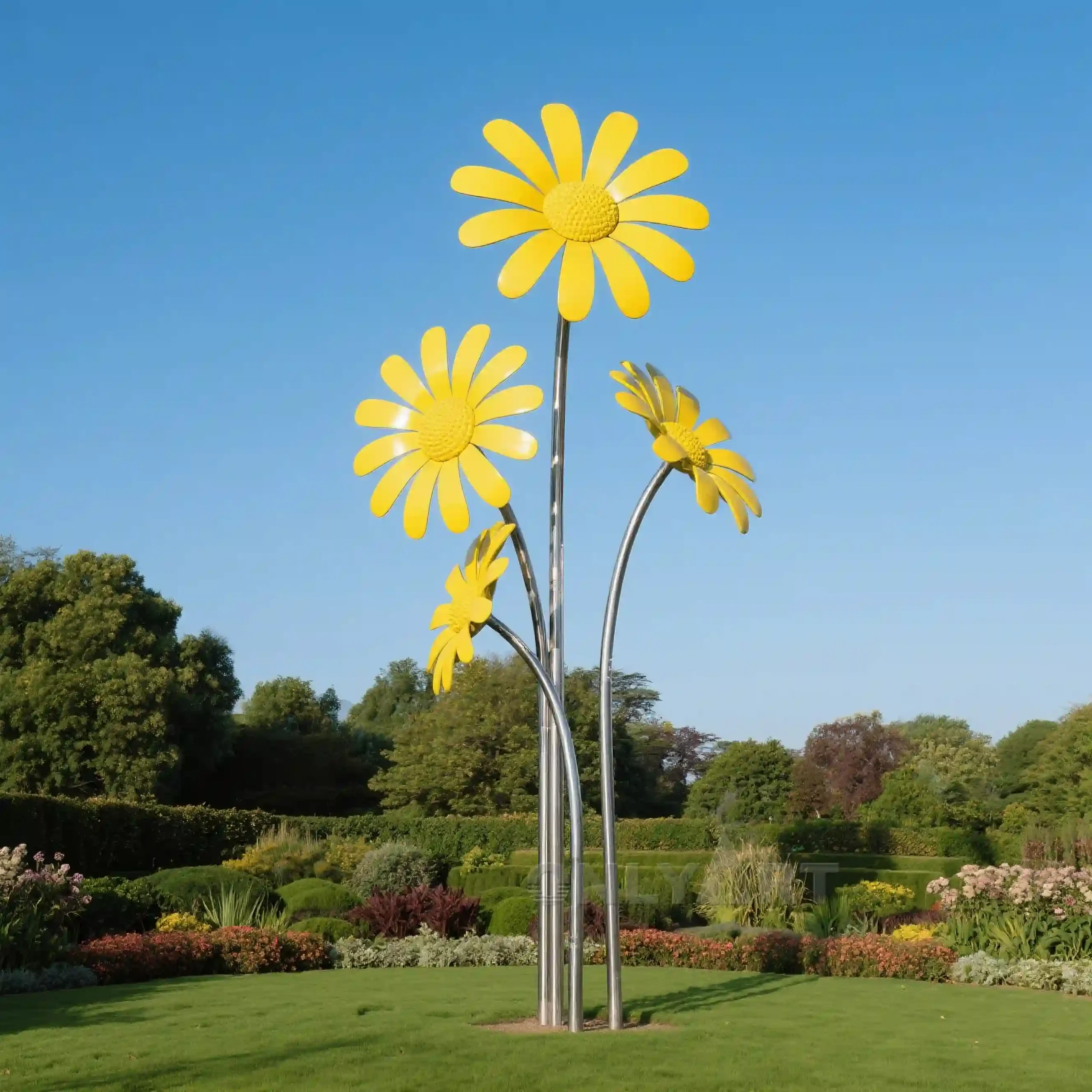Our garden features a bouquet of metal daisy flower. Facing the sun, they are beautiful and moving, inspiring us to love life, embrace nature, and live in harmony with it. We can customize this metal daisy flower sculpture. If you’d like, please contact our factory.