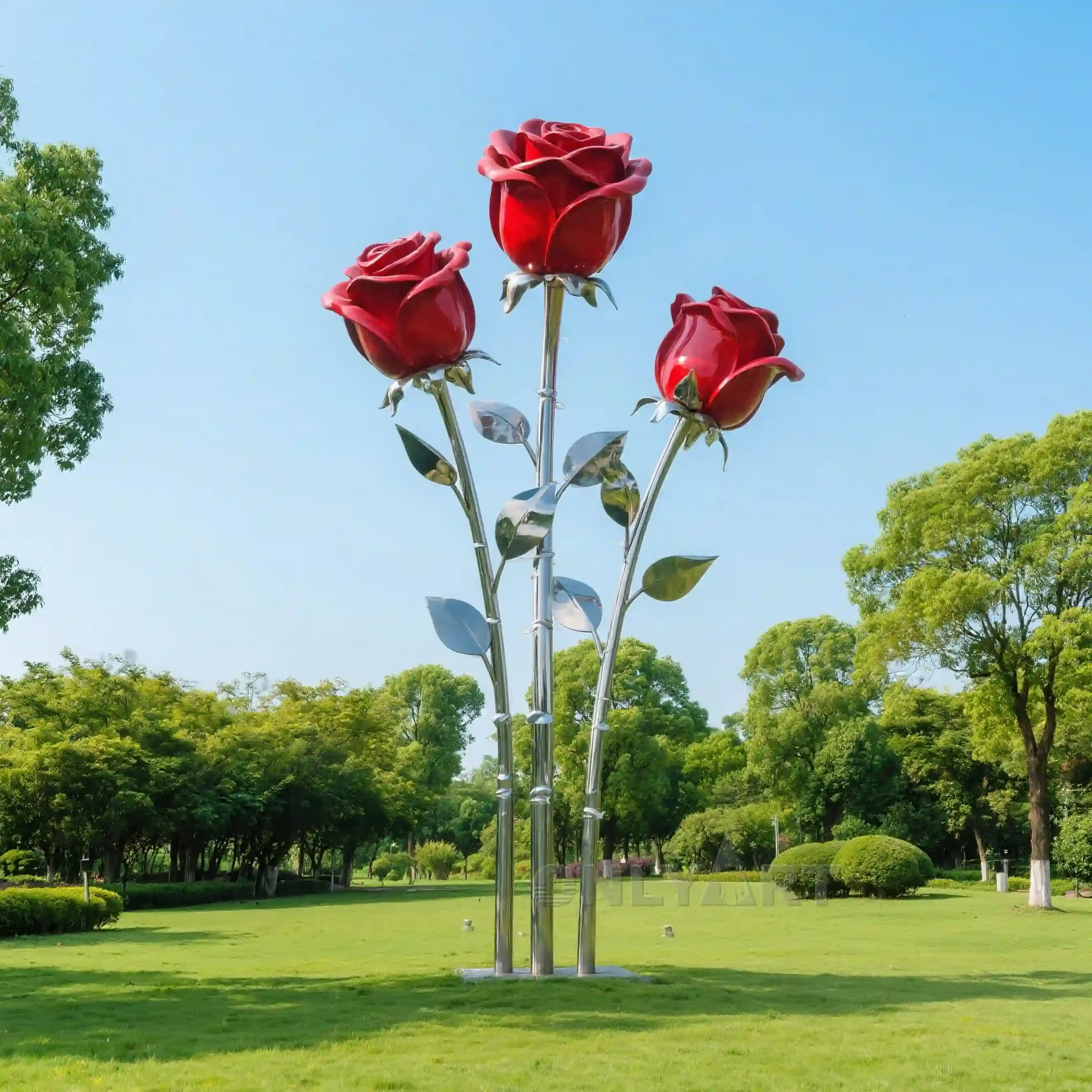 This is a Metal Geometric China Rose Sculpture with a mirror-finish stainless steel surface. We can customize the size, surface color, and material selection for you. It’s a great choice for decorating gardens and public art spaces. We primarily undertake large-scale outdoor sculpture projects. Contact us if you have any needs.