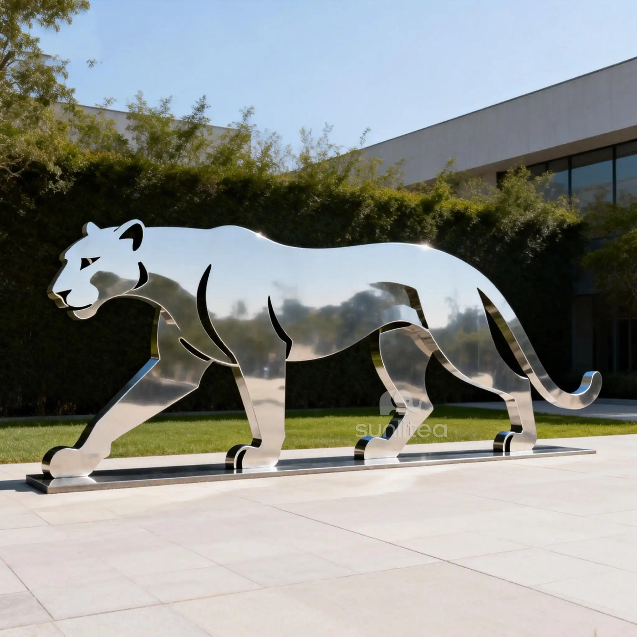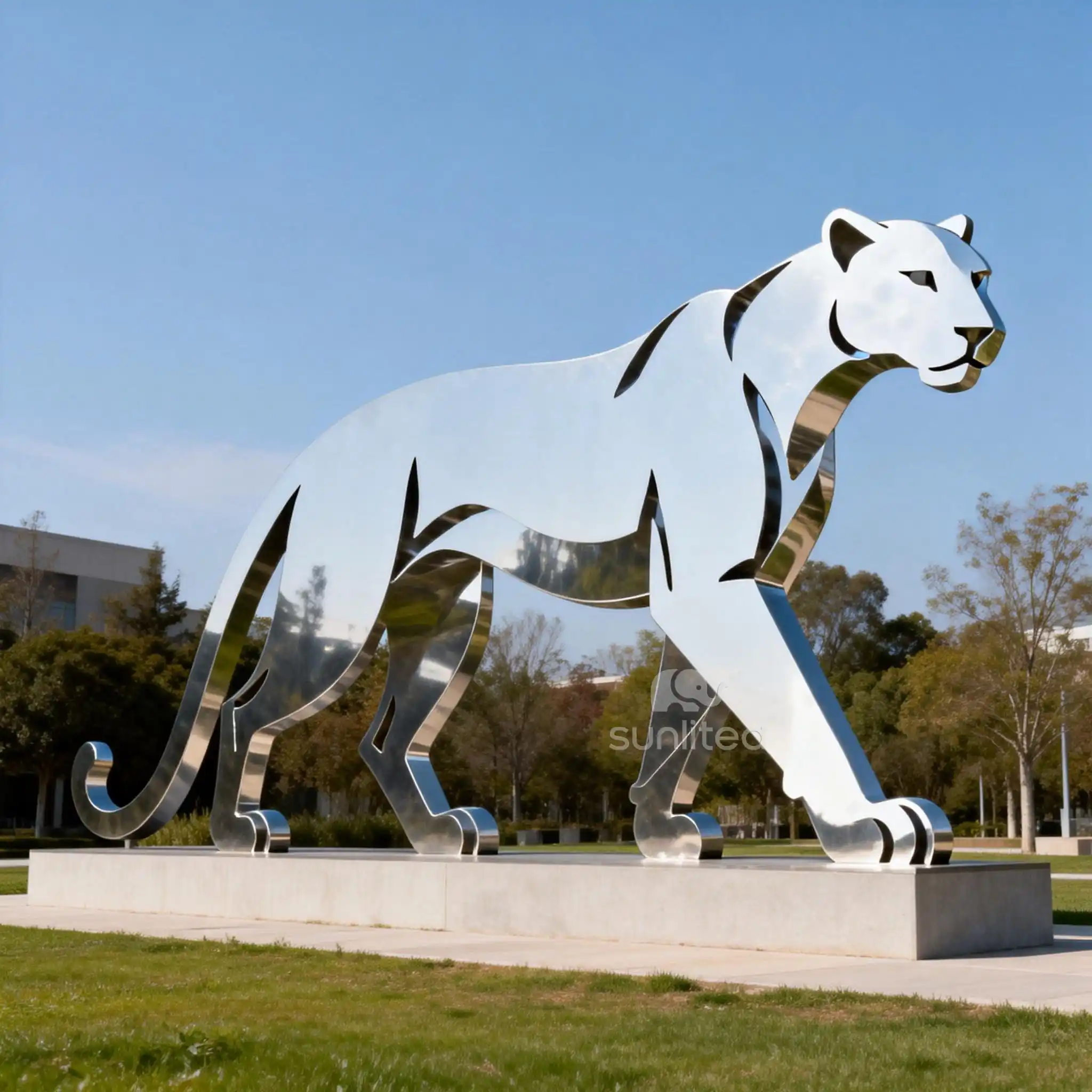 The cheetah’s pose is in mid-run: body low to the ground, legs extended, as if chasing prey. Whether placed in a modern garden, a zoo, or a commercial property, it adds a sense of energy and excitement to the space. The open-silhouette design allows it to blend with its surroundings, while its detailed features highlight the craftsmanship. It’s not just a sculpture; it’s a tribute to the world’s fastest land animal, designed to inspire awe and admiration.