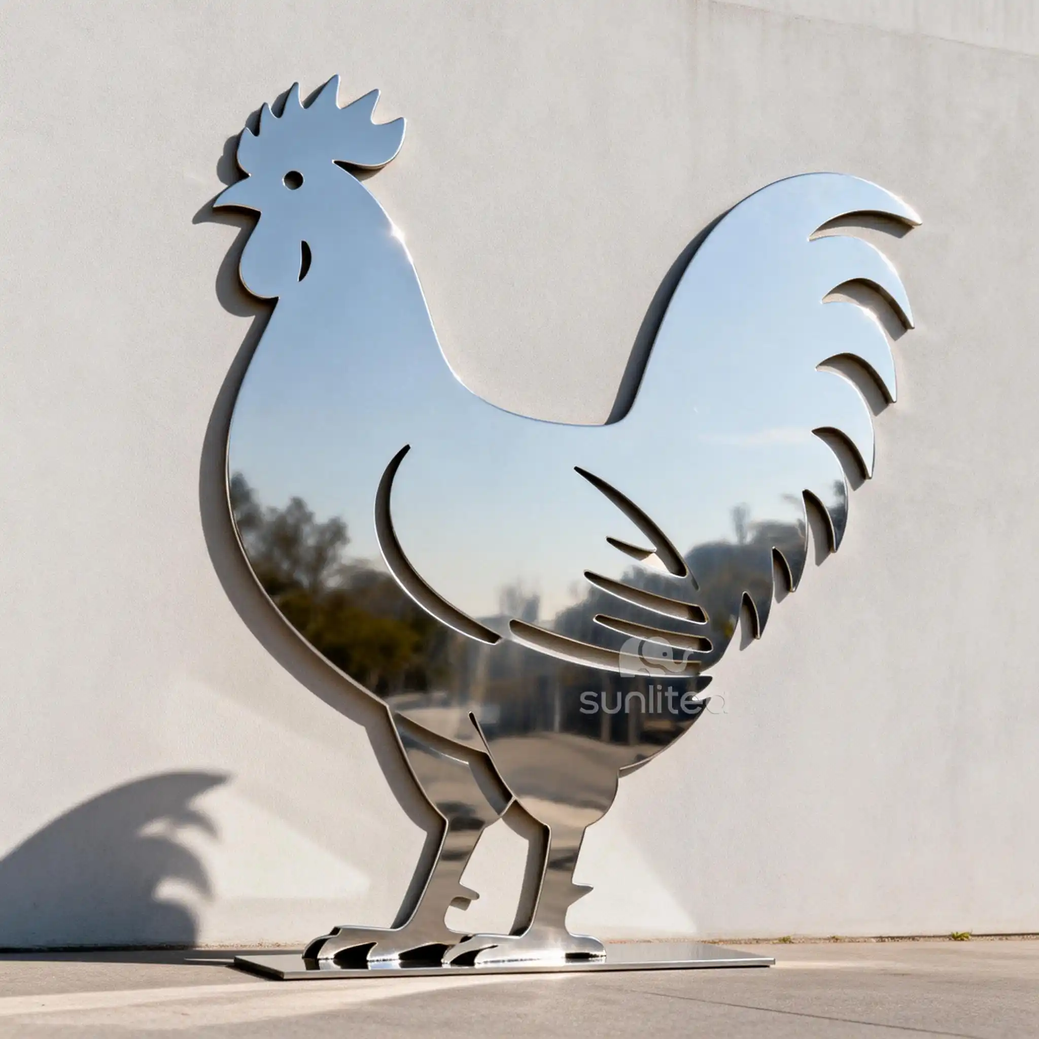 This metal simple rooster silhouette sculpture is a classic piece that captures the essence of rural life. The rooster??s form is rendered in a minimalist silhouette, with clean lines that emphasize its iconic features??comb, wattle, and upright stance. Made from durable metal, it is designed to withstand outdoor conditions, making it ideal for farmyards, gardens, or rustic-themed homes. The rooster is a symbol of dawn, new beginnings, and vigilance, adding a layer of meaning to the sculpture. Its simple design allows it to blend with any rustic or farm-style decor, while its symbolic significance makes it a meaningful addition to any space. Whether placed in a garden, on a porch, or in a kitchen, it serves as a reminder of the beauty of nature and the cycle of life.