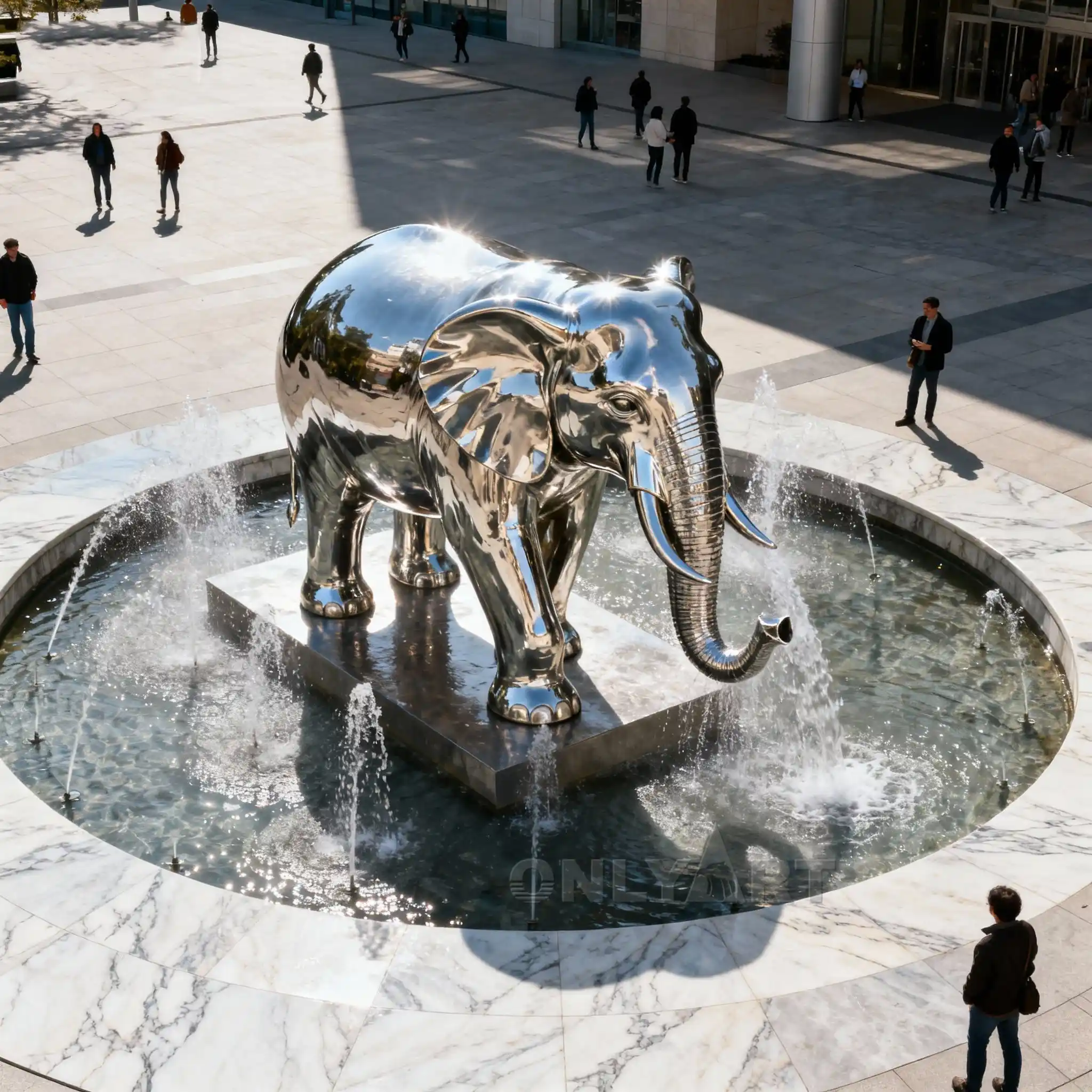 Our factory can customize various animal water fountains, including an Outdoor Elephant Fountain For Sale. This custom elephant water fountain features water flowing from the elephant’s trunk, with the elephant standing in the center of the pool. At night, lighting can be installed in the pool, creating a beautiful effect when the lights illuminate the elephant. We can customize this Outdoor Elephant Fountain (For Sale) for you.