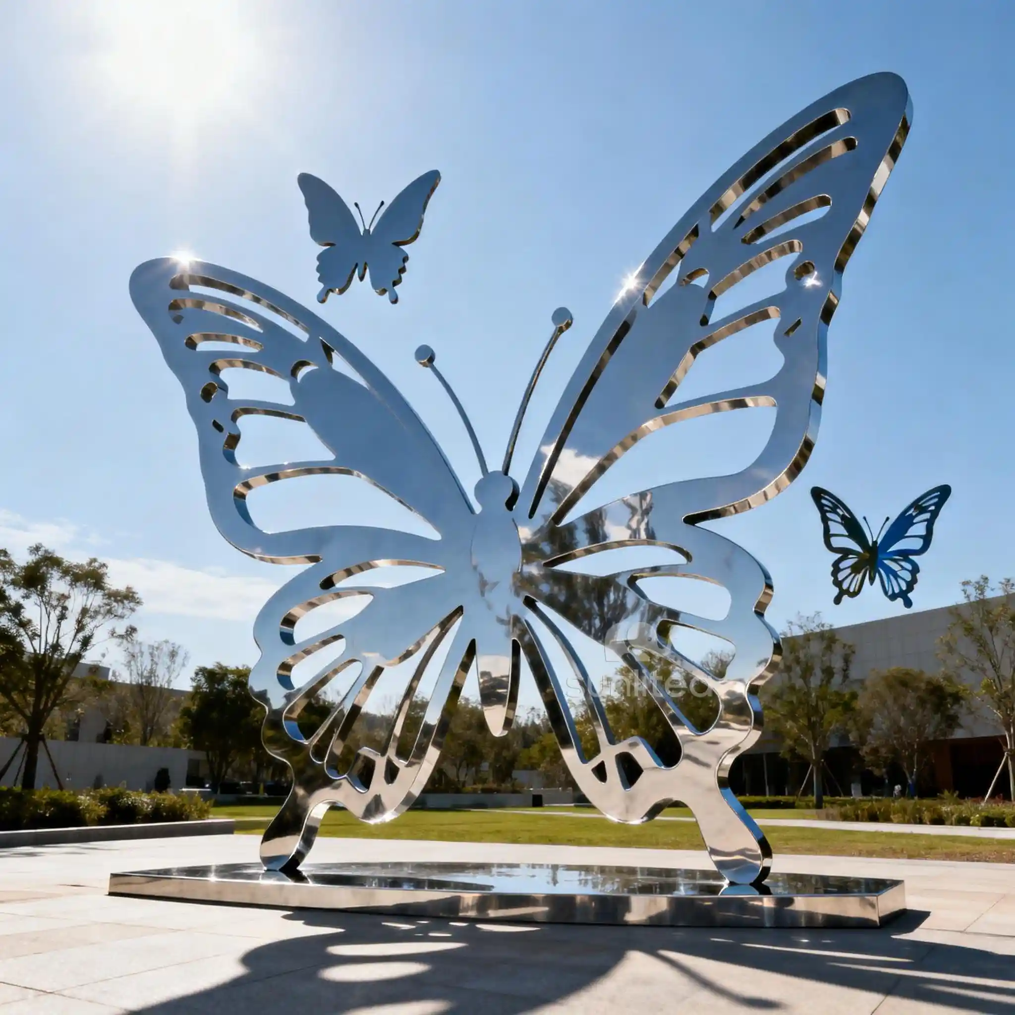 Modern design principles guide this sculpture, emphasizing simplicity and elegance while capturing the essential beauty of butterfly forms. The reflective quality of stainless steel creates interesting interactions with surrounding elements, making each viewing experience unique. Ideal for contemporary gardens, urban outdoor spaces, and modern landscape designs, this piece complements minimalist aesthetics perfectly.