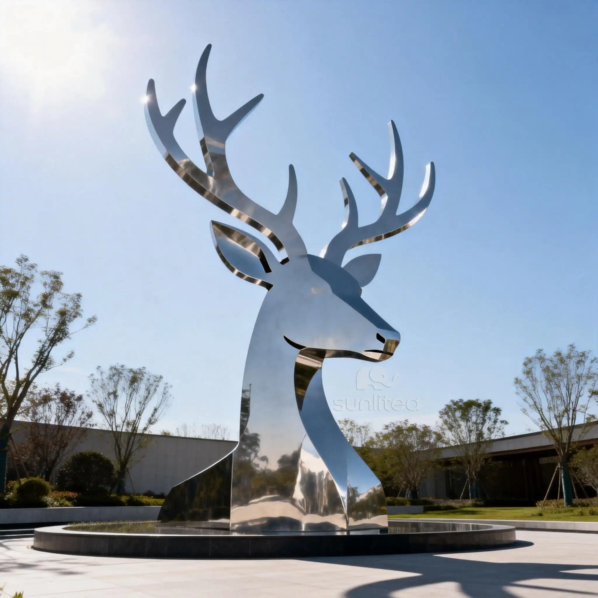 A stainless steel garden deer head statue, sleek and elegant. Perfect for adding a touch of nature to outdoor spaces.