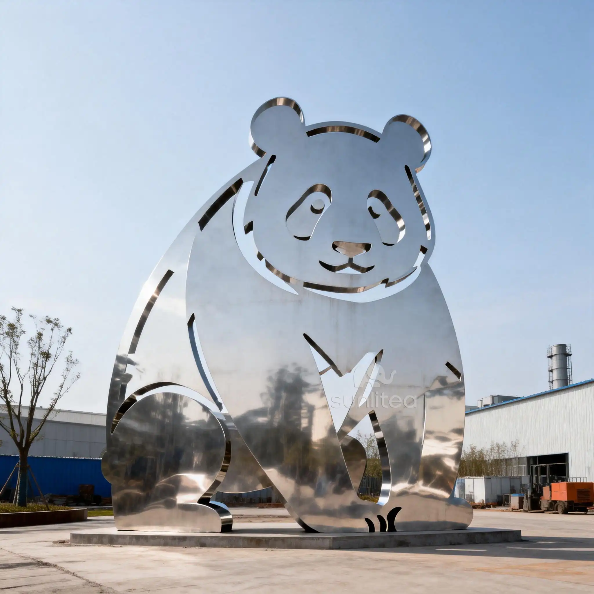 The Stainless Steel Silhouette of Panda Statue reimagines the beloved panda as a modern art piece, blending cuteness with sophistication. Made from polished stainless steel, this 3-foot-tall sculpture features a reflective surface that mirrors its surroundings, creating a dynamic display that changes with the light. The panda??s silhouette is sleek and minimalist, with clean lines that emphasize its round body and iconic features. Unlike traditional panda decor, this piece is sleek and contemporary, making it ideal for modern gardens, urban balconies, or indoor spaces. The stainless steel construction ensures it??s rust-free and low-maintenance, while its compact size makes it easy to place. Whether placed in a sunny spot to catch the light or in a shaded area to reflect the sky, it adds a touch of elegance to any space. It??s not just a statue; it??s a work of art that celebrates the panda??s beauty in a fresh, modern way.