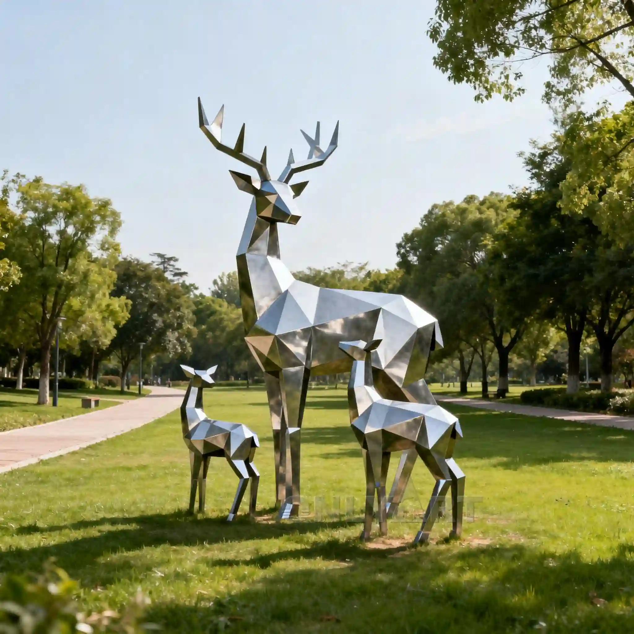 This is a geometrically shaped Stainless Steel Stag Statue for Sale. Our factory offers this year’s new animal sculpture design, employing abstract geometry.