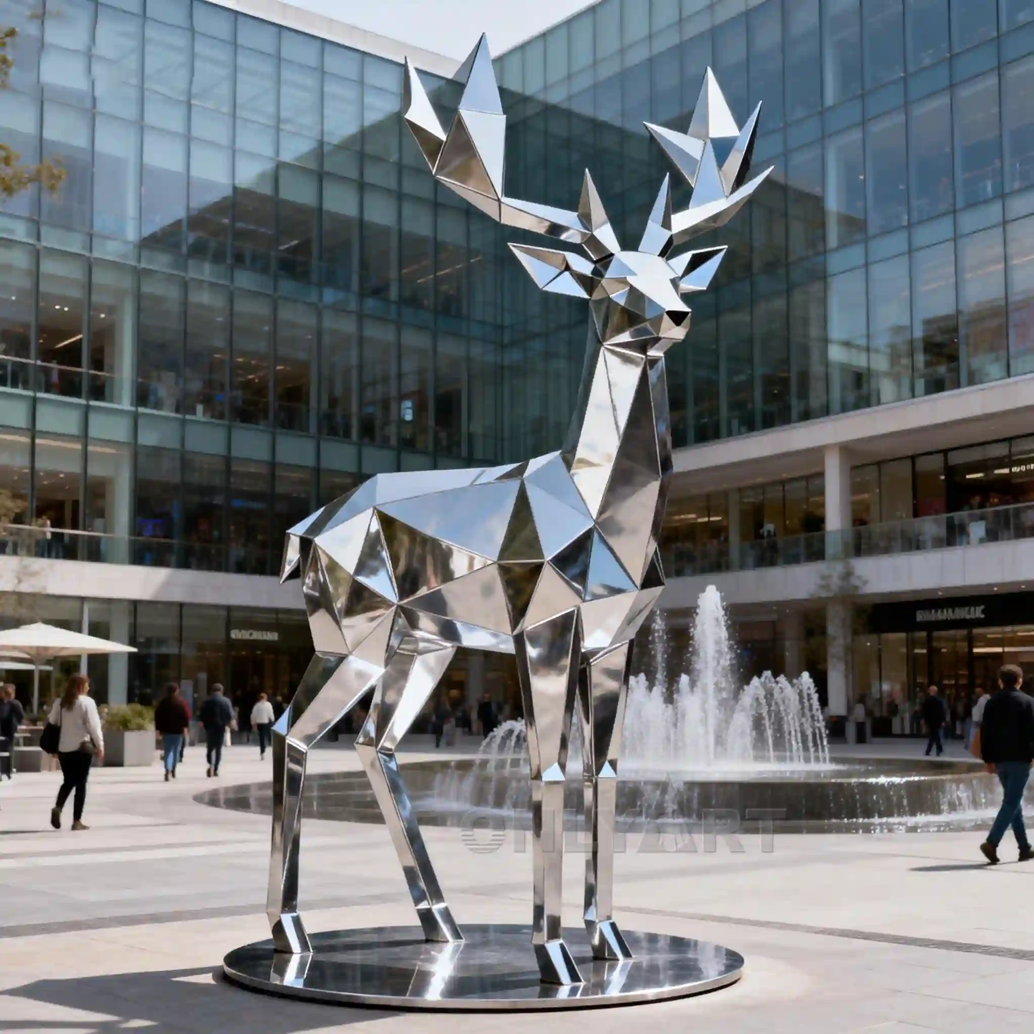 This is a geometrically shaped Stainless Steel Stag Statue for Sale. Our factory offers this year’s new animal sculpture design, employing abstract geometry, mechanics, and modern art elements. The size, surface color, and materials of the Stainless Steel Stag Statue can all be customized to your specifications.